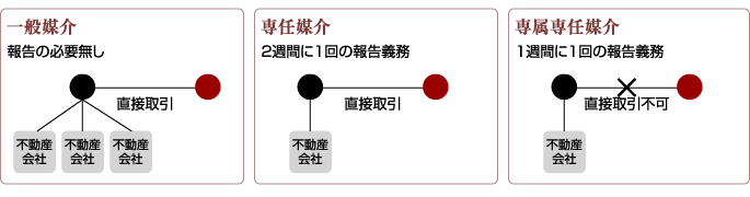不動産の仲介(媒介契約)には3つの形態があります。